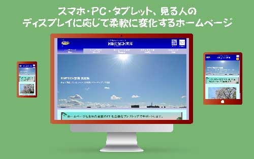 今このページをご覧頂いている皆様にはこのページはどのように見えているでしょうか。ホームページを閲覧するためにはパソコン・タブレット・スマホ・テレビ等をインターネット回線に接続し、私どもがサーバーに公開した「フレキシブルデザイン」というコンテンツ(このページ)の内容をそれぞれのデバイス(媒体)、パソコンであったりタブレットやスマホに読み込み、各デバイスに接続あるいは組み込まれたモニターに表示された内容を閲覧されていることでしょう。